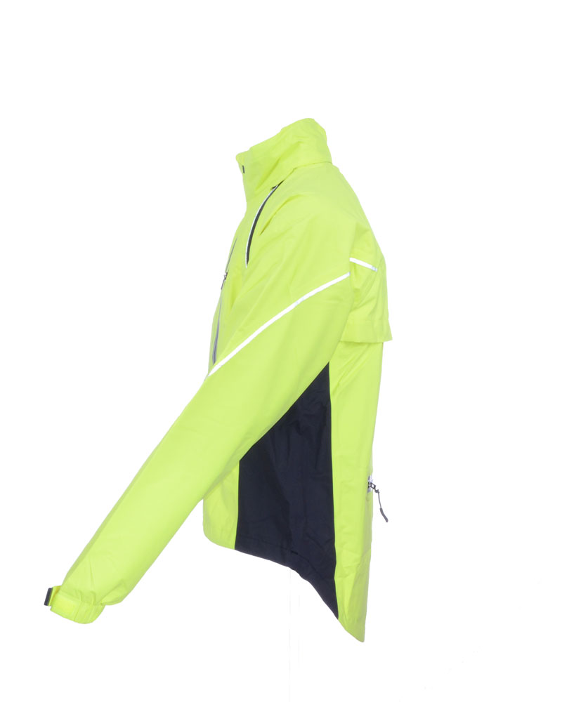 Trvale nepromokavá membránová bunda PROFI NOKOMIS je unikátní nejen použitým materiálem, ale také možností odepnout rukávy a použít ji jako vestu. Je vyrobena z vysoce prodyšné látky a má vynikající ventilaci. Bundu PROFI NOKOMIS lze jednoduše sbalit do kapsy, která je na zadní straně bundy a pomocí popruhů se suchými zipy, které jsou všity do vnitřní části této kapsy, ji připnout k sedlu či rámu kola, takže ji můžete mít vždy s sebou. Jde o ryze cyklistickou bundu a proto není vybavena kapucí.